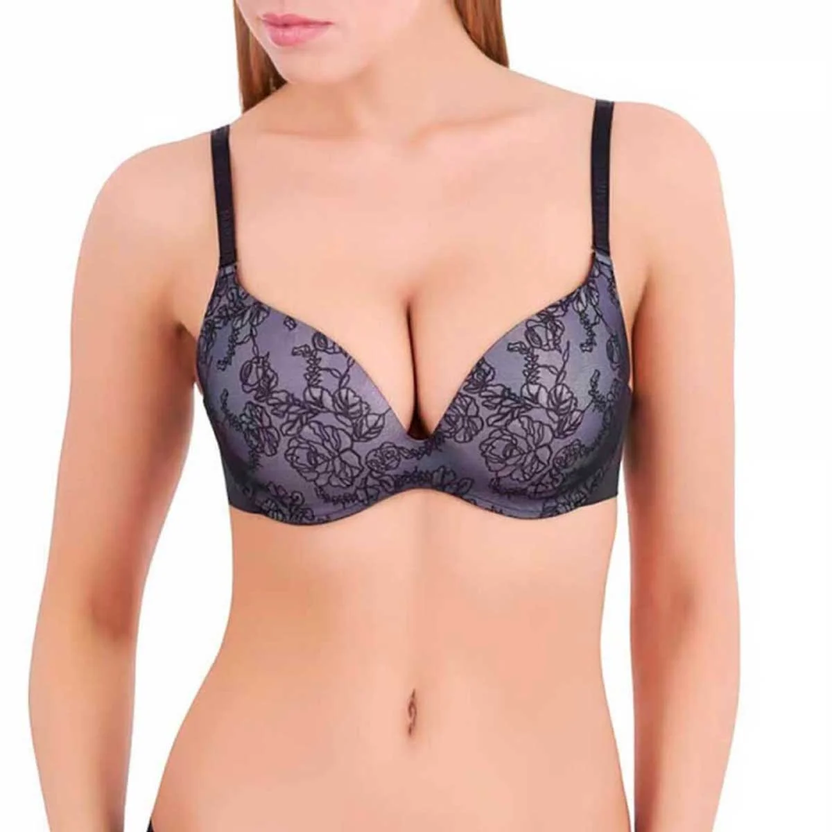 Бюстгальтер від французького бренду Marc & Andre. Формовані вбудовані чашки пуш ап утворюють глибоке декольте. Бічні деталі посилені прихованими вертикальними кісточками. У конструкції стану використовується інноваційний ультрагнучкий пластик з 3-D технологією, що забезпечує необхідний підтримуючий ефект. Бретели з регулятором довжини. U-подібна спинка забезпечує комфортну посадку, коригує силует та утримує на місці бретелі. Застібка на спині на гачки.