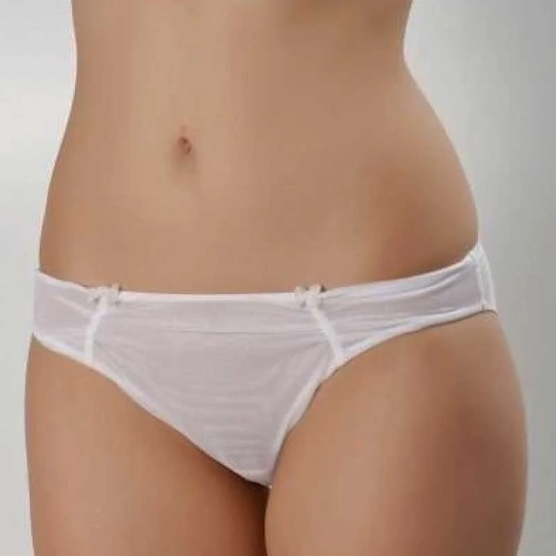 Колекція корсетної білизни Tulle Fronce від французького бренду Chantal Thomass. Трусики сліп заниженої посадки виготовлені з прозорого тюлю. Комфортний середній бочок. Задня деталь з центральним злегка прилаштованим швом для ідеальної посадки по фігурі. Трусики виготовлені з напівпрозорого тюлю. Верхній пояс спереду прикрашають два бантика. Бавовняна ластовиця.