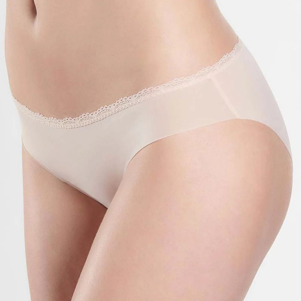 Трусики сліп Lysessence від французького бренду Aubade. Трусики виконані з гладкої еластичної мікрофібри. Тонка комфортна гумка оформлена мереживною тасьмою. Ідеальна обробка краю лазерною різкою, що виключає розшматування та осипання кромки. Бавовняна ластовиця. Трусики непомітні під одягом і ідеально підійдуть під вбрання, що облягає.