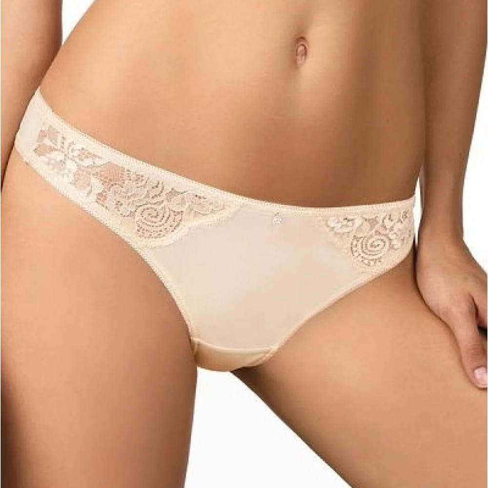 Трусики стрінги від французького бренду Marc & Andre колекція Delice. Трусики із середньою лінією талії. Виконані з м’якої мікрофібри з фігурними симетричними вставками з ніжного мережива з боків. Декор – підвіска із кристалом. Бавовняна ластовиця з 100% бавовни відмінно пропускає повітря і вбирає вологу, забезпечуючи комфортні умови носіння.